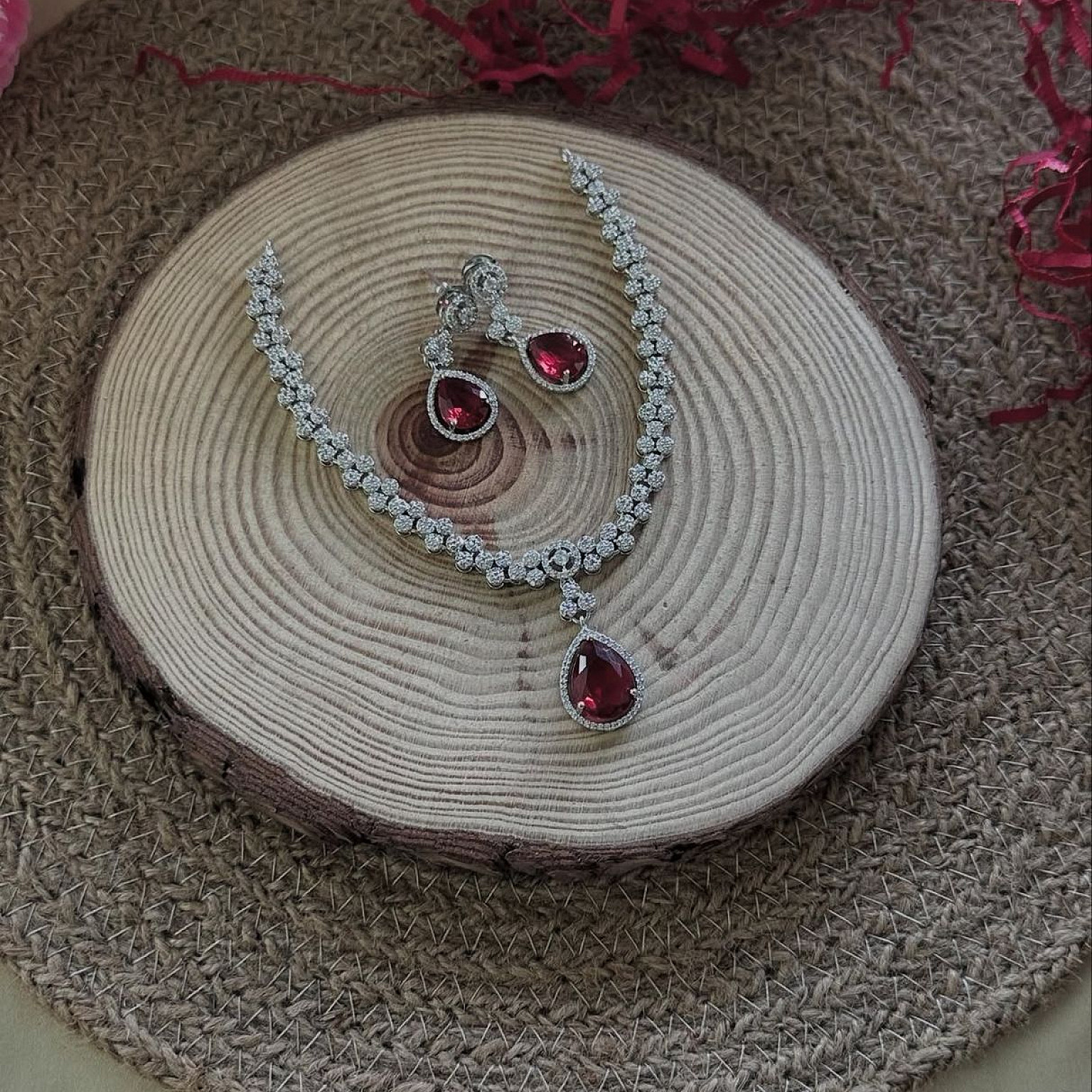 PREMIUM SILVER NECKLACE RED